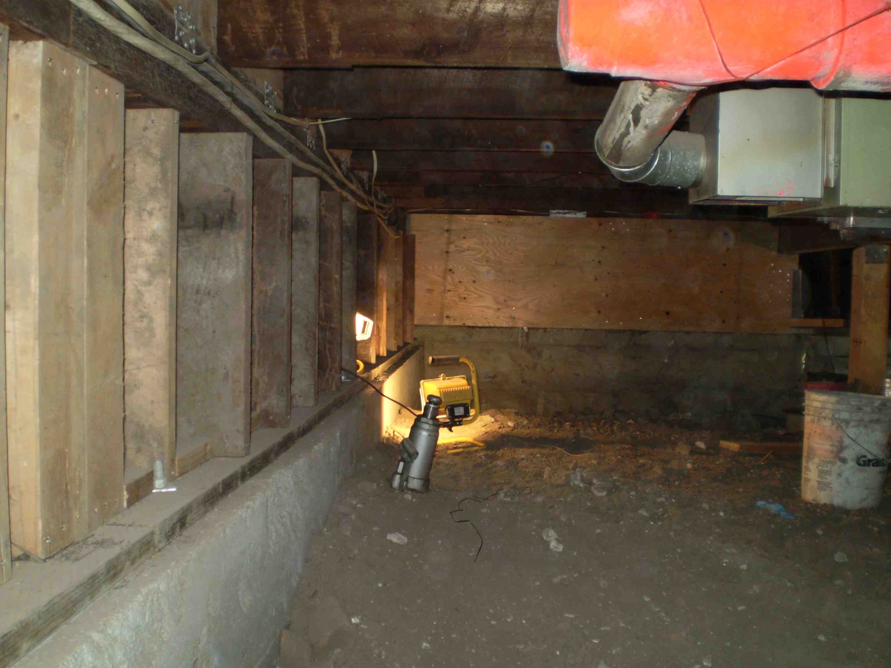 | This depicts a typical replacement foundation under a house.